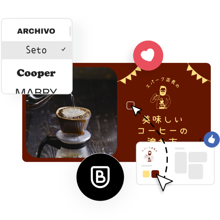 プロがデザインしたテンプレートを使ってアイデアを得たり、白紙の状態からオリジナルのFacebookの投稿を作成できます。写真、アイコン、ロゴ、自分好みのフォント、その他のカスタマイズ可能な素材を使ってデザインのテーマを設定、本格的なデザインに仕上がります。Adobe Expressを使えば、無料でかんたんにすばやくデザインを作成、保存、共有できます。