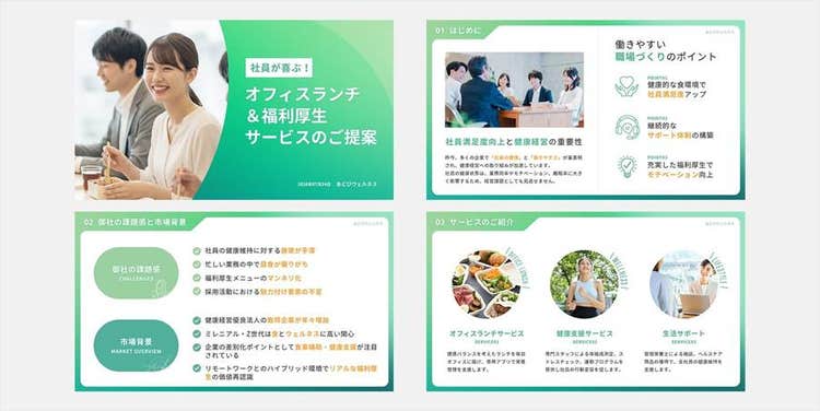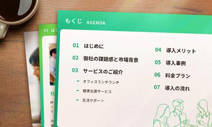 今回は企業向けの福利厚生サービスの提案資料を例に、目次をデザインする方法をご紹介します。