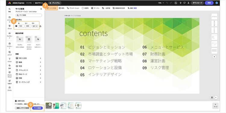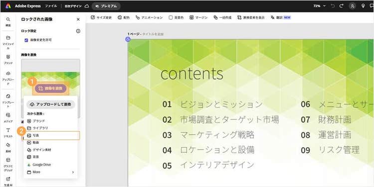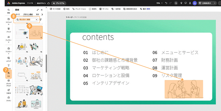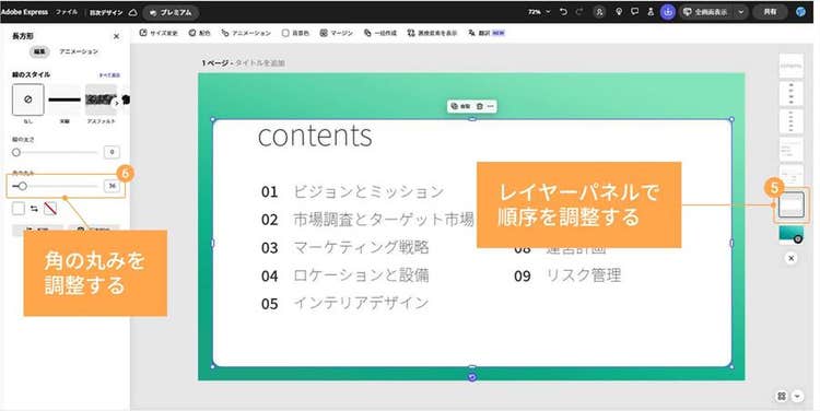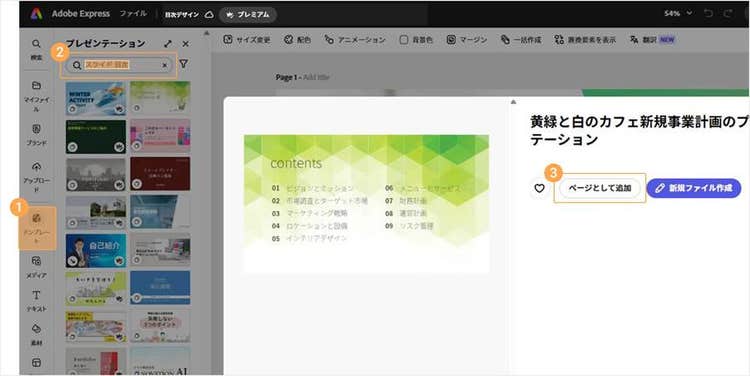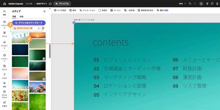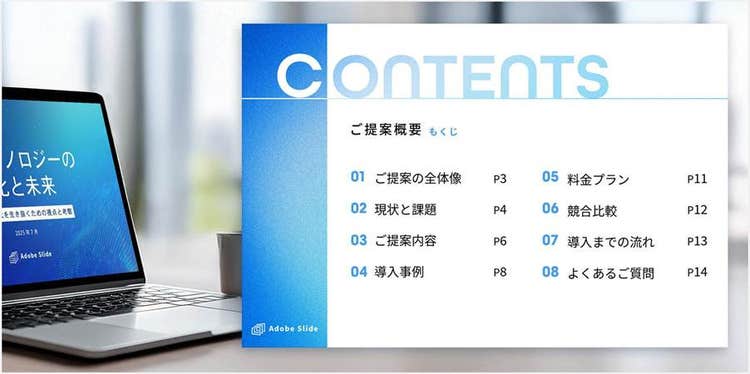 Adobe Expressを使えば、提案書やプレゼン資料に適したビジネス向けの目次や