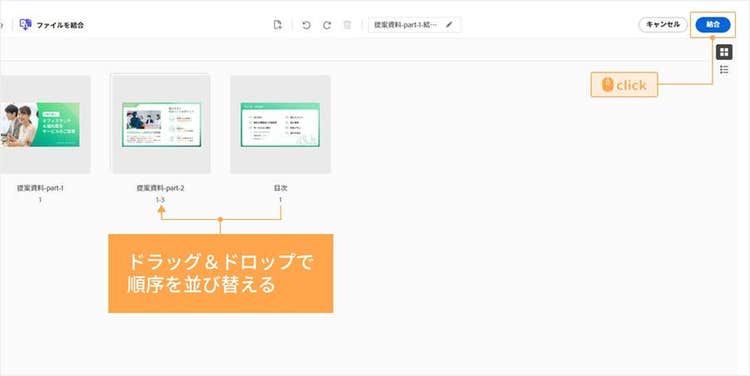 PC内から、目次を追加したい提案書やしおりなどの文書(PDFファイル)を選択すると、自動でアップロードされます。