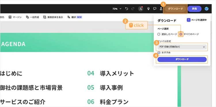 目次のデザインが完成したら、ダウンロードしましょう。