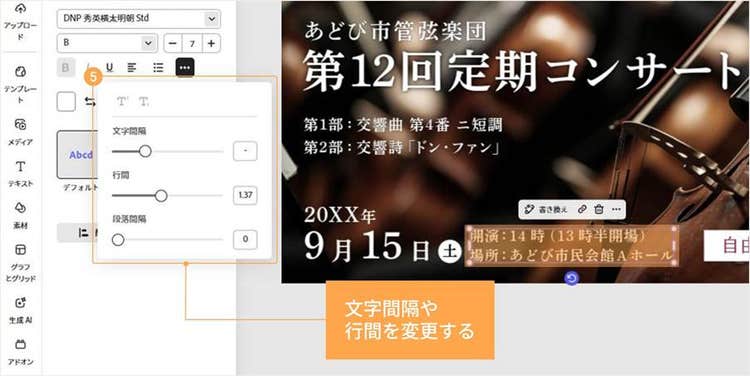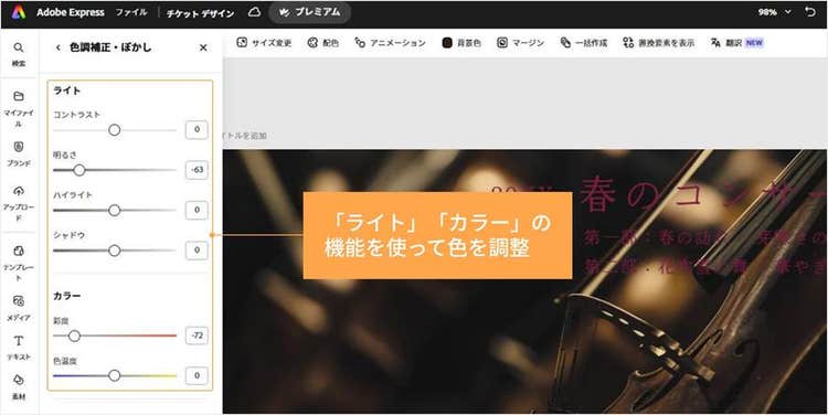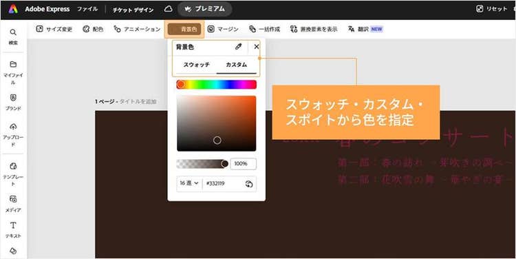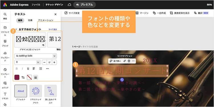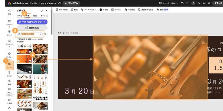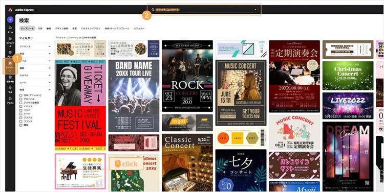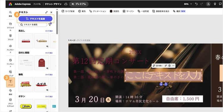 ここからはAdobe Expressを使用して、実際にチケットをデザインする手順を解説します。