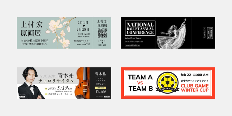 さらに、コンサートのチケットであれば、主な演目名を記載したり、指揮者の名前や顔写真を入れたりすると、イベントの雰囲気がより伝わりやすくなります。