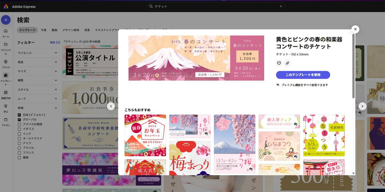 そんなときに便利なのが、無料テンプレートを使って手軽にチケットをデザインできる「Adobe Express」です。