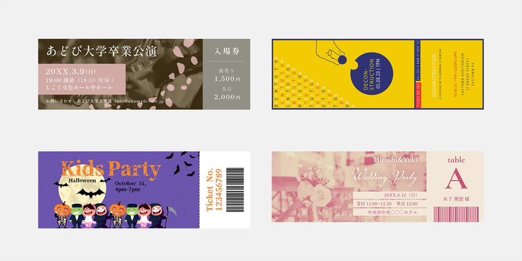 チケットは、イベントやサービスの魅力を伝えるだけでなく、日時や会場、利用条件などの大切な情報をわかりやすく伝える役割を担っています。