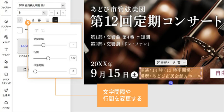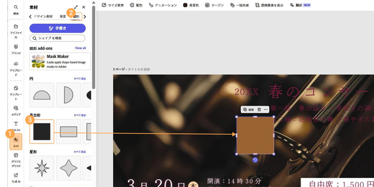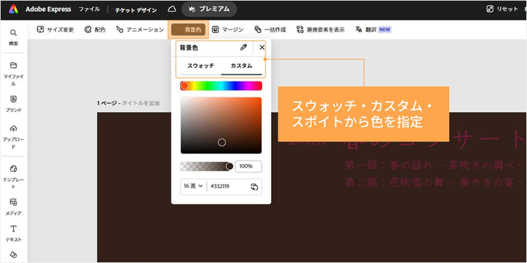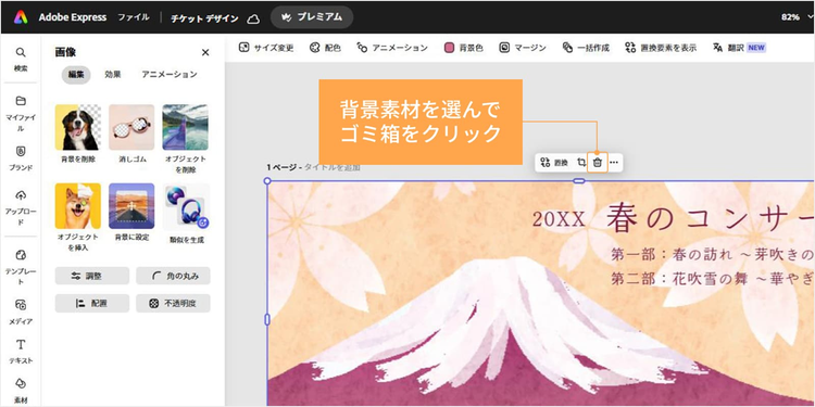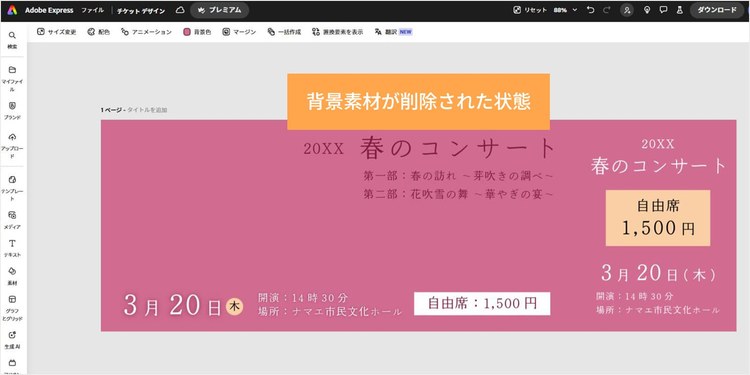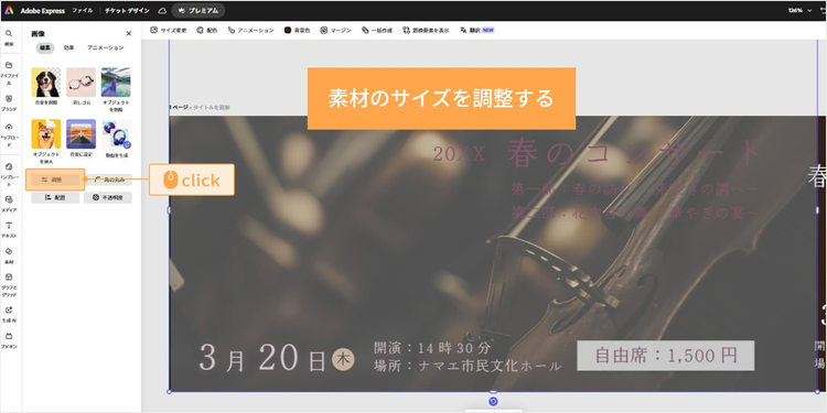ここからはAdobe Expressを使用して、実際にチケットをデザインする手順を解説します。