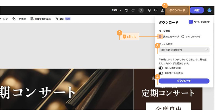 「ダウンロード」ボタンをクリックし、ファイル形式を選択します。