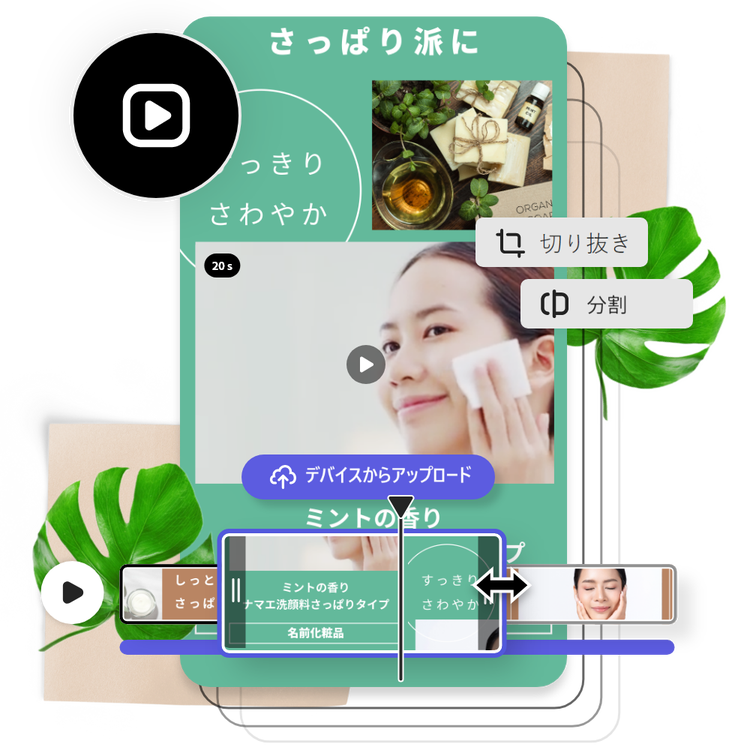 動画広告、SNS投稿、ストーリーズなどの企画、作成、公開を一箇所で行いましょう。