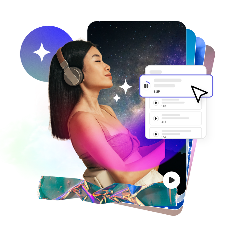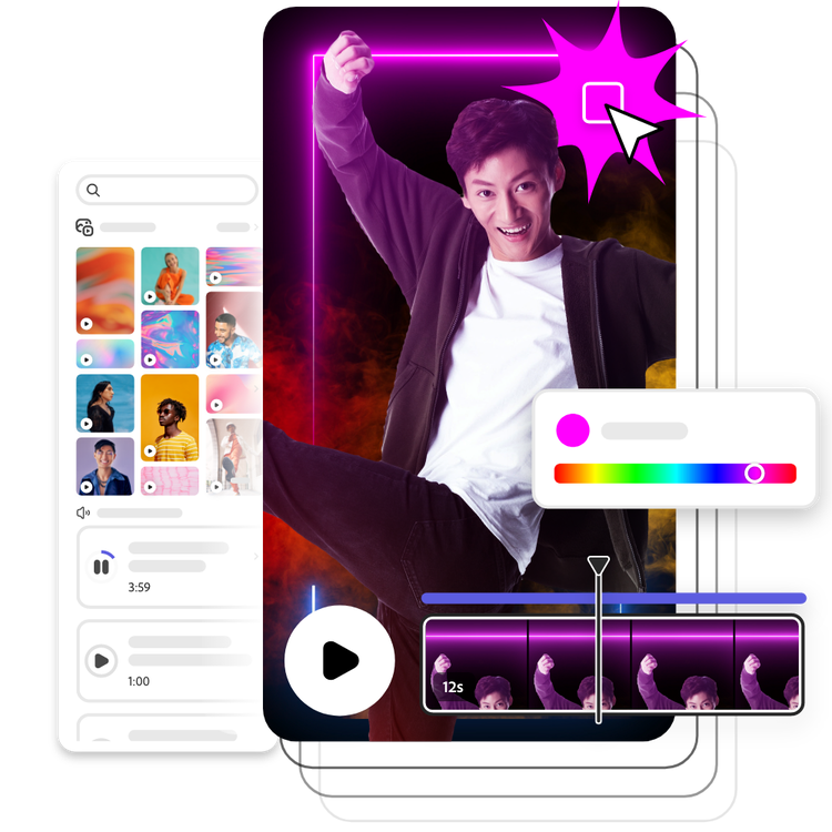 お気に入りの思い出の動画から、スタルジックなミュージックビデオを作成してみましょう。プロが撮影した動画をカット、分割、貼り合わせて、映画のような動画を作ってみましょう。2,000を超えるAdobe Fontsから雰囲気に合ったフォントを選んで、歌詞字幕付きの動画を作りましょう。 できあがったミュージックビデオは、YouTube、Instagram、 Facebook などのSNS投稿に適したサイズに、ワンクリックで変更できます。