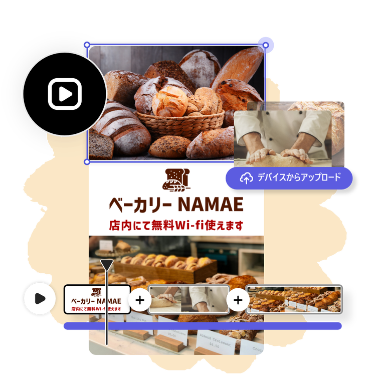 Adobe Expressのオンラインの編集画面を使って、魅力的な動画、画像、SNSサービスへの投稿、チラシなど、なんでも作成できます。写真と動画を組み合わせてひとつの動画にすることもできます。