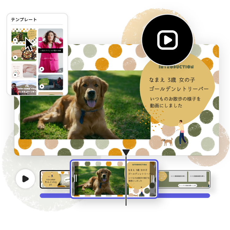 ギャグ動画、回想録、発売製品の宣伝など、Adobe Expressには魅力的なYouTube動画を作成するために必要なものがすべて揃っています。無料の動画テンプレートがたくさん用意されているので、オリジナルの作品の編集をスピードアップできます。メディア素材が足りない場合は、ロイヤリティフリーの動画、画像、サウンドトラックなどの素材を編集画面から選んだり、会社や店舗のロゴやテーマカラーを追加したりしてカスタマイズできます。動画制作の経験がなくても大丈夫です。