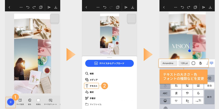 次の手順では、テキストを加えて、より目標や理想のイメージが伝わるビジョンボードに仕上げていきます。
