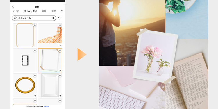 しかし、Adobe Expressには、ビジョンボードに使える写真やイラスト、フォントといった豊富なデザイン素材が揃っています。