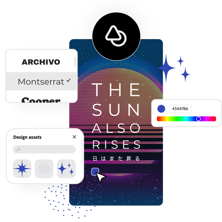 プロがデザインしたテンプレートを参考にイメージをふくらませてみましょう。アイデアが決まっている場合は、白紙の状態から作ることもできます。写真、アイコン、ロゴ、フォントなど、カスタマイズ可能なデザイン素材を活用すれば、気分の上がる壁紙ができあがります。Adobe Expressで、オリ、オリジナルのデザインを簡単に作成、保存、共有できます。