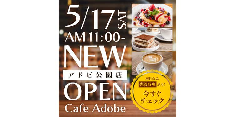 「アドビカフェ 〇月〇日 グランドオープン!」「こだわりのスイーツが楽しめる!アドビカフェOPEN」といったように、店舗名やオープン日を端的に伝えるフレーズを採用しましょう。