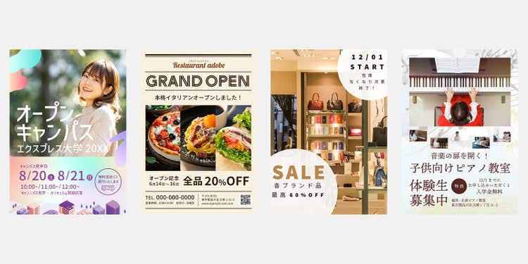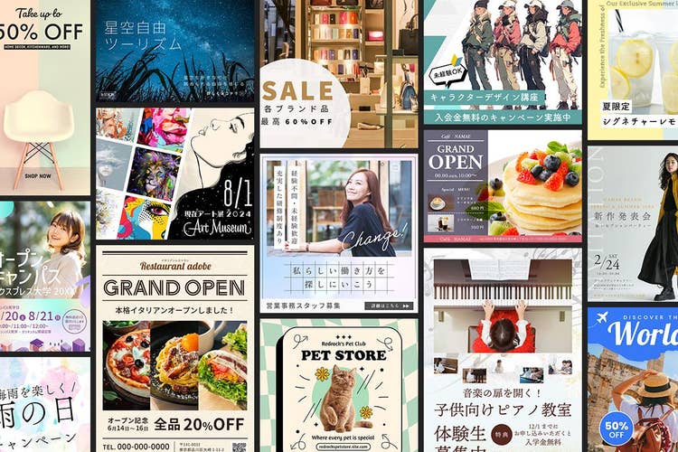 デザインに迷う方や今すぐ作成したい方は、Adobe Expressのデザインテンプレートを参考にしてみましょう。