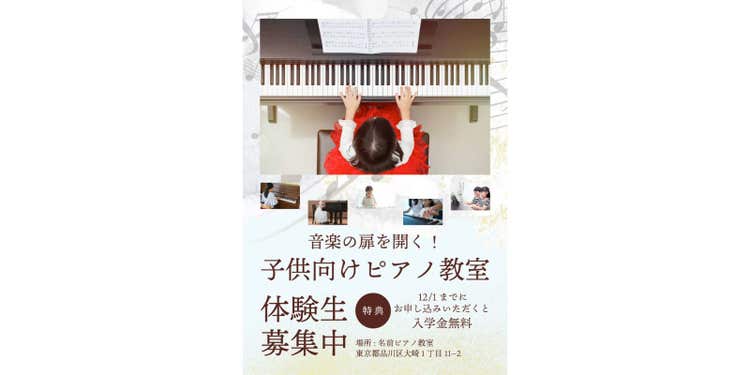 また、ターゲットに合わせたデザインの工夫も重要です。例えば、ピアノ教室のチラシでは、子ども向けなら明るめのカラーや丸みのあるフォントを使うと楽しさが伝わりやすくなります。一方、本格的なレッスン教室なら、シックでシンプルなフォントや落ち着いたカラーを用いると、専門性と信頼感を演出できます。