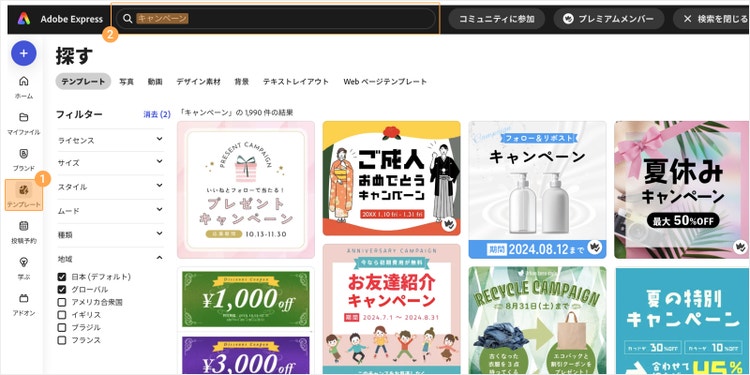 ここからは、Adobe Expressのテンプレートを使って、キャンペーン用バナーを作る手順を解説します。