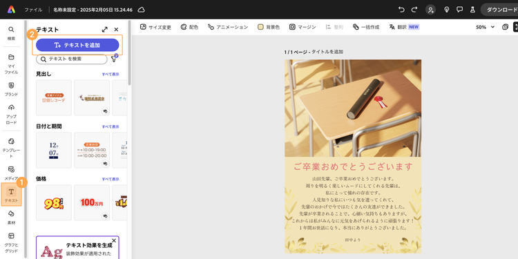Adobe Expressで卒業祝い用のメッセージカードをデザインする方法