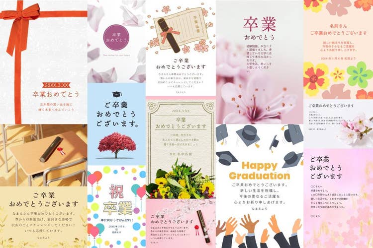 以下のリンクからでも、卒業祝いのメッセージカードに使えるテンプレートの一覧ページにアクセスできます。