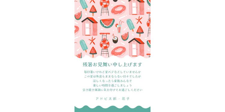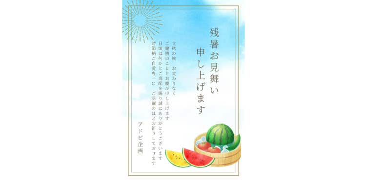 Adobe Expressには、残暑見舞い用のテンプレートが豊富に用意されているため、デザインに自信がない方でもカンタンにおしゃれな残暑見舞いを作成できます。