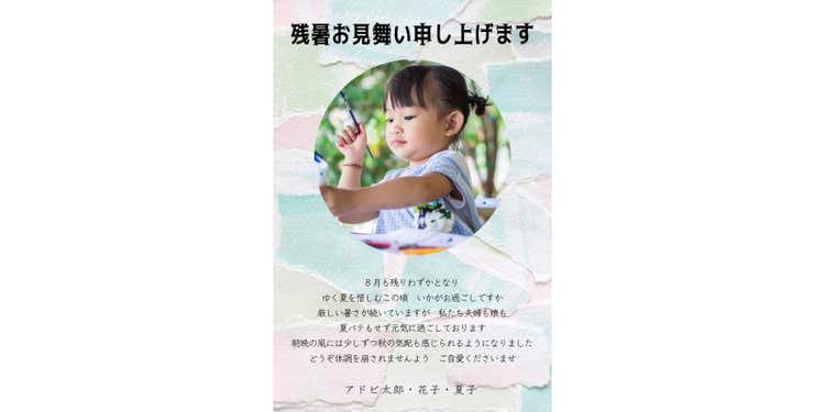 以上の手順で、カンタンにオリジナルの残暑見舞いを作成できました。