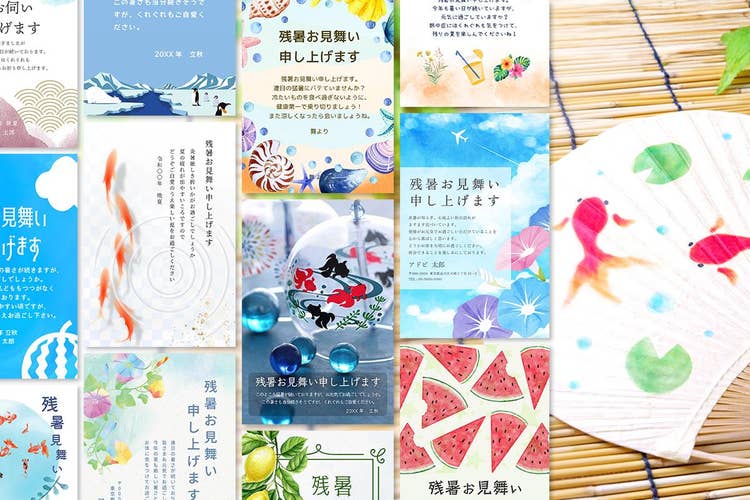 すると、残暑見舞いのテンプレート一覧が表示されます。暑さを和らげてくれるような、涼しげなデザインのテンプレートが豊富に揃っているので、送る相手を想像しながら選んでみてください。