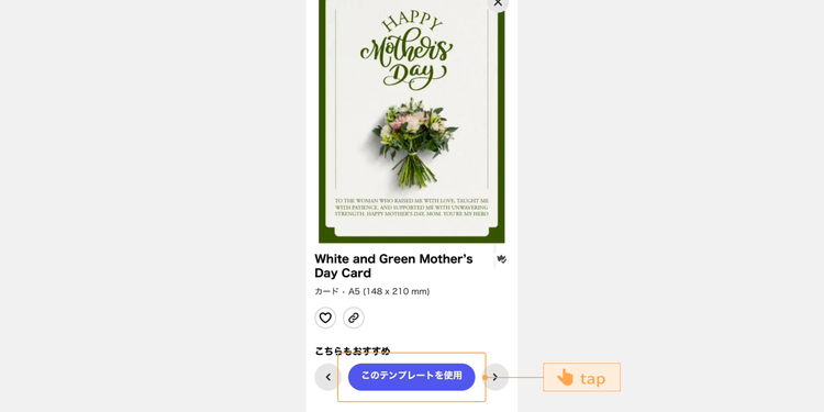 その中からお母さんに合いそうなデザインを選び、「このテンプレートを使用」をタップして、編集を始めましょう。