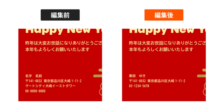 それでは、まず名前や住所などのテキスト部分を編集していきます。