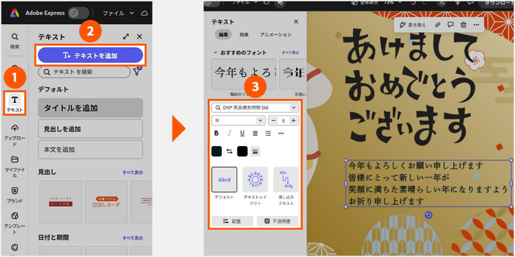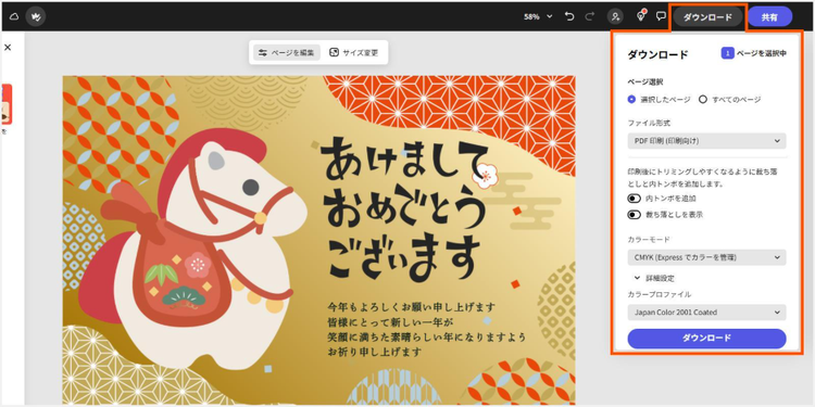 ここまで、Adobe Expressを使った年賀状づくりの手順をご紹介してきました。