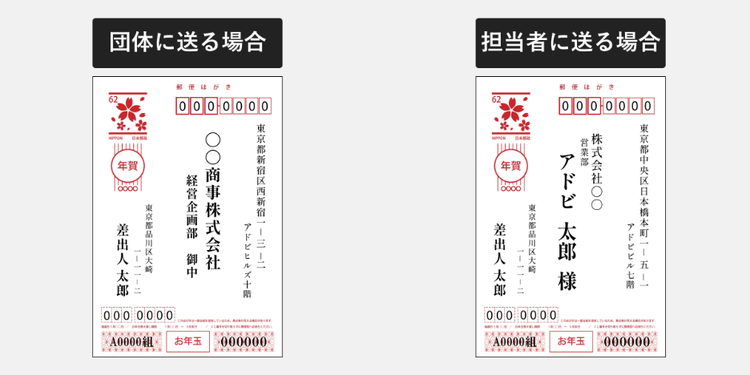 宛名は住所や差出人の氏名より、大きく目立つように書きましょう。個人名の末尾には、相手との関係性に関わらず「様」を付けます。