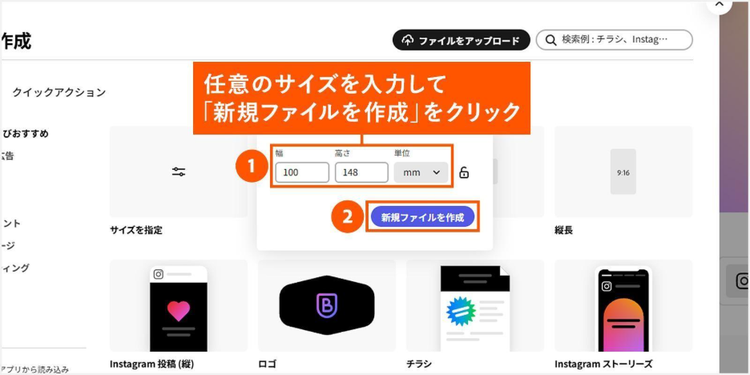 任意のサイズを入力して「新規ファイルを作成」をクリックしましょう。