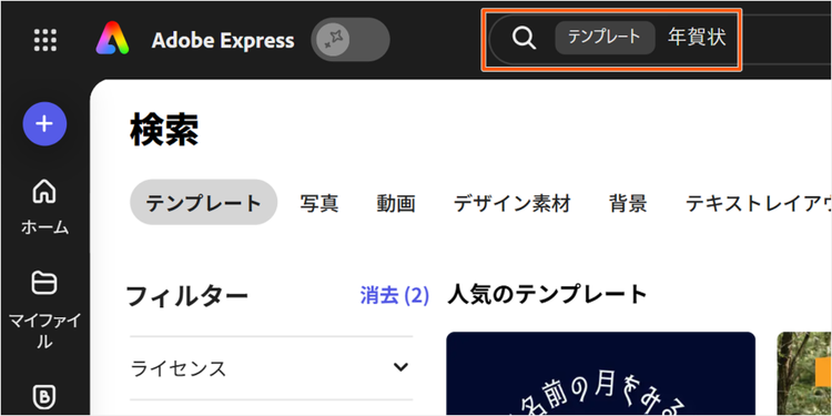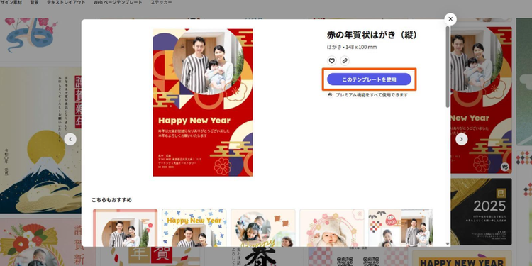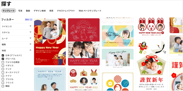 まずはAdobe Expressのテンプレートをチェックして、年賀状のデザインを選んでみましょう。