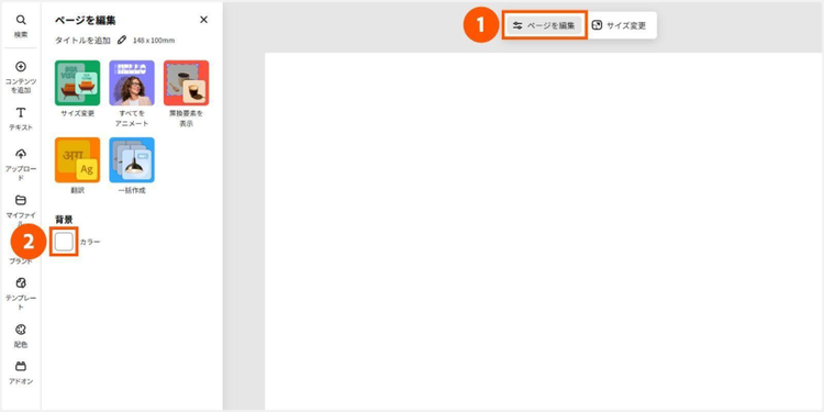 その中の「背景」>「カラー」の左にある四角をクリックしてください。