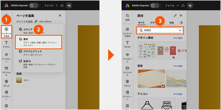 Adobe Expressを用い、さっそく年賀状のデザインを作成してみましょう。