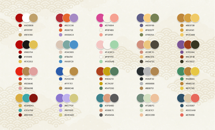 ちなみに、新年のめでたい雰囲気を表現できる配色には以下のようなものが挙げられます。