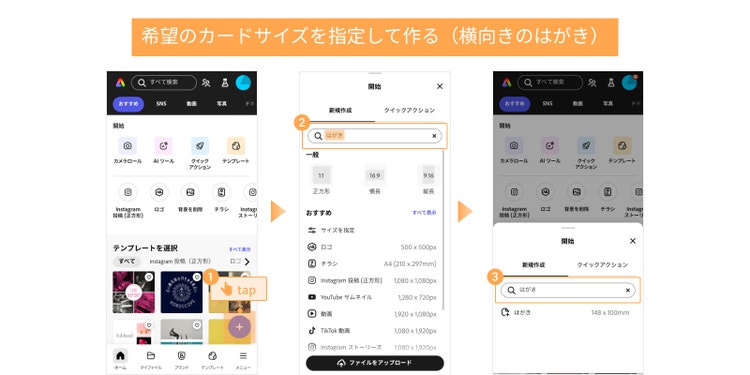 Adobe Expressを使ってメッセージカードを作成するには、以下の2つの方法があります。