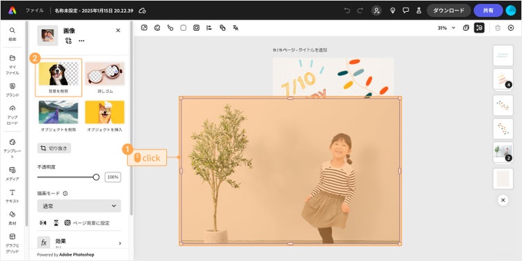 このように、Adobe Expressには写真をカンタンに加工できる様々な機能が揃っています。予想外に楽しい仕上がりになる場合もあるので、ぜひ試してみてください。