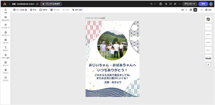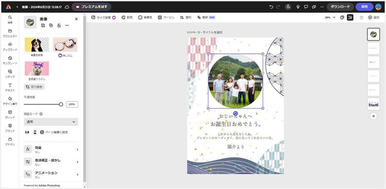 Adobe Expressなら、敬老の日に贈る素敵なメッセージカードを、直感的な操作でかんたんに作成できます。ぜひAdobe Expressを使って、オリジナルのメッセージカードを作ってみてください。