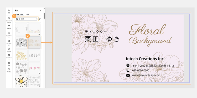 入れたいモチーフが決まっている場合は「名刺 花柄」のようにワードを入れると、見つかりやすくなります。