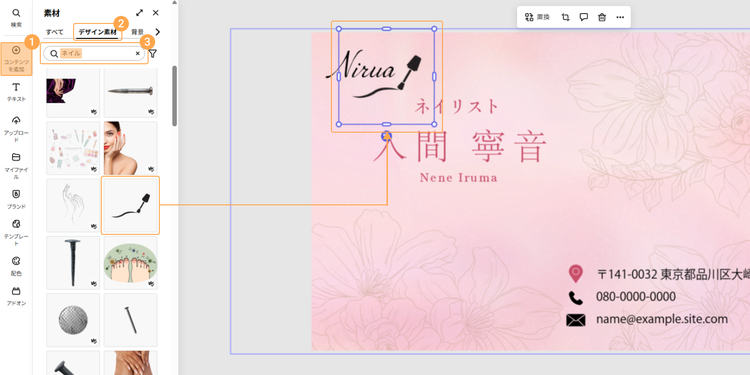 なお、今回は個人で活動するネイリストの名刺を例に進めていきます。