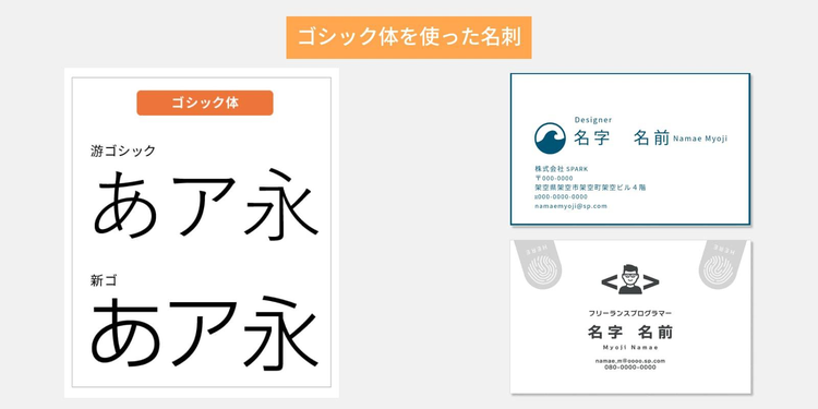 また、ひとつの名刺で使用するフォントは1~2種類に絞り、雑多な印象にならないようにします。