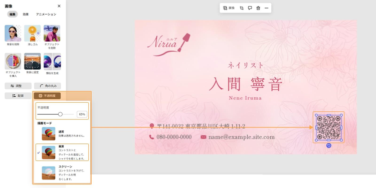 Adobe Expressには、名刺をより思い通りに仕上げるための機能が充実しています。