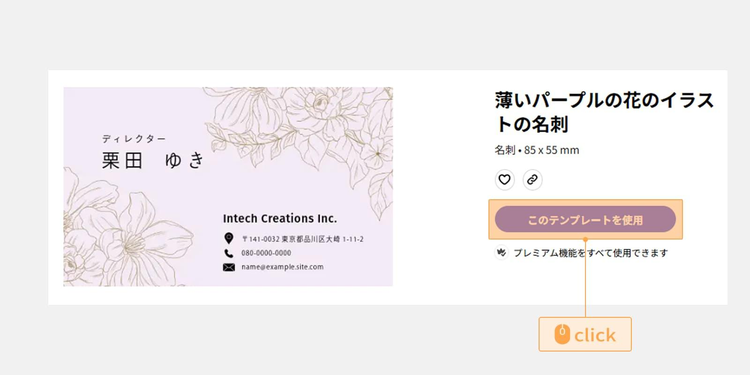 使いたいテンプレートが見つかったら、「このテンプレートを使用」をクリックし、編集していきます。
