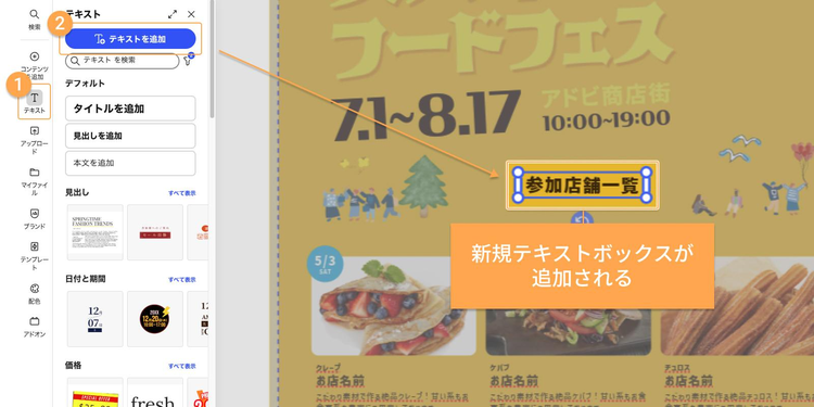 テキストボックスを追加したい場合は、ツールバーの「テキスト」>「テキストを追加」の順にクリックしましょう。