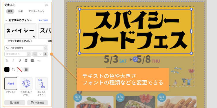 選んだテンプレートをベースに、文字や画像をカスタマイズしてみましょう。