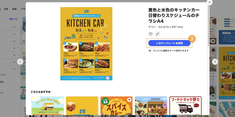 気に入ったデザインが見つかったら「このテンプレートを使用」をクリックし、編集画面に進んでください。