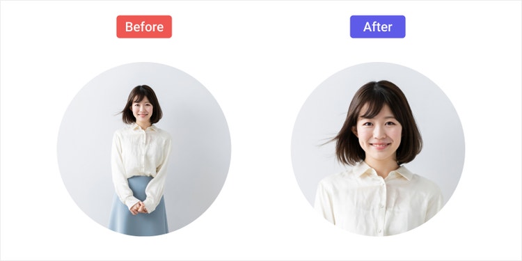 例えば、人物の写真をアイコンに使う場合は、下の画像の右側の写真のように、胸から上を写して表情が分かるようにすると、人となりや雰囲気が伝わりやすくなります。