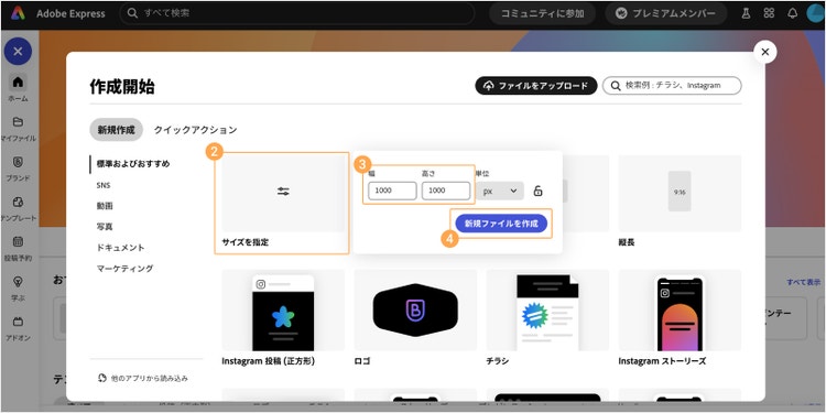 なお、ここではPCでの手順をご紹介しますが、Adobe Expressのアプリを使ってスマホでデザインすることも可能です。