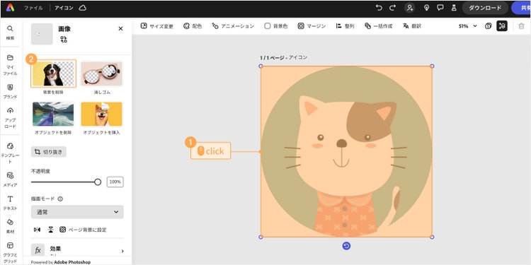無料のデザインツール「Adobe Express」を使えば、デザインの経験がない方でもカンタンにアイコンを作成できます。 ここからは画像も使いながら操作手順を解説します。